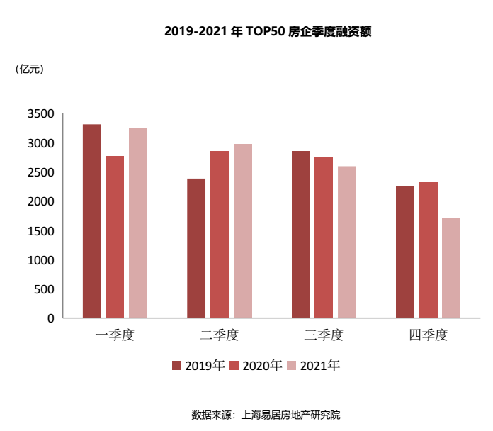 2021年,在“房住不炒”和“三道紅線”、房地產(chǎn)貸款集中度政策出臺(tái)背景下,全年政策先緊后松,房企融資呈現(xiàn)供需端持續(xù)收緊的態(tài)勢(shì)。