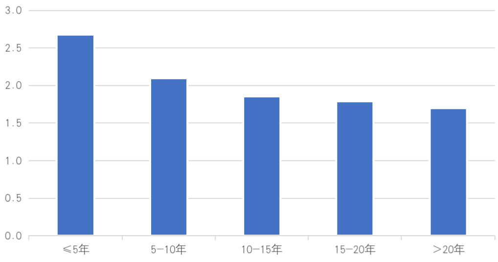不同樓齡段項(xiàng)目平均物業(yè)費(fèi)(元/㎡/月)