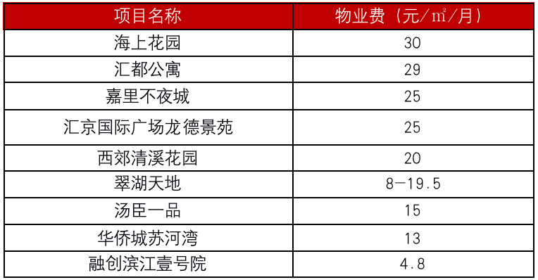 值得注意的是,高端住宅并不一定完全就對(duì)應(yīng)高物業(yè)費(fèi)。