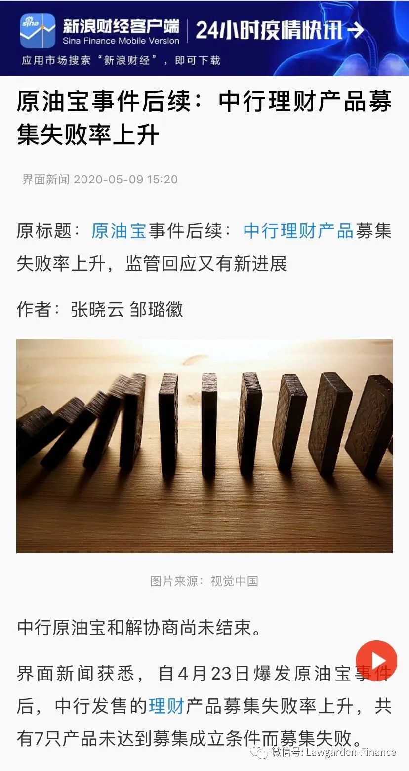 事實上,金融機構在注重業務增長的同時,也應給與消費者權益保護同等重視。金融消費者乃金融機構之衣食父母,正所謂“水能載舟,亦能覆舟”。當某行還在為蠅頭小利與客戶掰扯賠償比例的時候,殊不知該行理財產品的募集失敗率正在上升,據界面新聞記者發現,自4月23日爆發原油寶事件后,該行共有7只產品未達到募集成立條件而募集失敗,在該新聞評論區,更有留言稱已將在該行的存款轉移至其他銀行。一起消費者保護事件,可能引致整個公司信用的喪失。