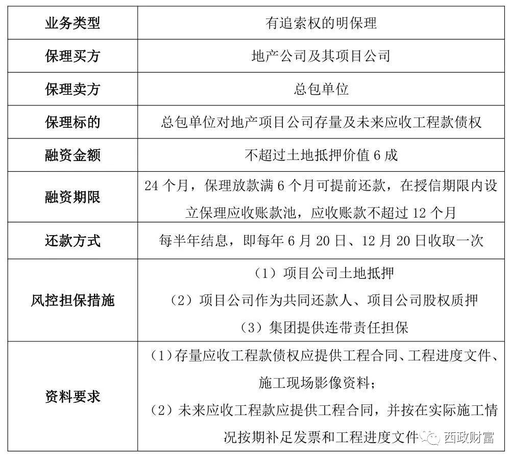 (1)施工方或材料供應商將其對房地產項目公司的應收賬款轉讓給西政保理;