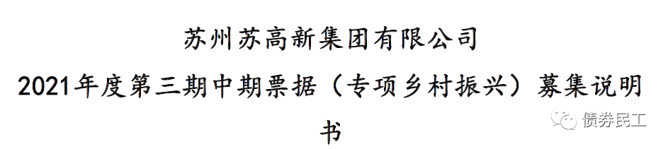 繼權益出資型票據和碳中和債之后,交易商協會再度推出新產品:鄉村振興票據!根據孔雀開屏網站的公開信息,蘇州蘇高新集團有限公司2021 年度第三期中期票據(專項鄉村振興)已經處于等待上會階段了,標志著專項鄉村振興票據要到來了。