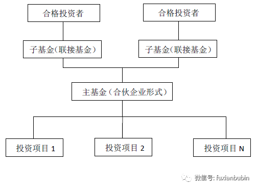 母子基金采用“Feeder-Master”架構(gòu),是指由基金管理人專門發(fā)起設(shè)立一直上層私募基金(又稱“聯(lián)接投資載體”),并作為有限合伙人,投資于下層的另一私募基金,然后通過下層私募基金進(jìn)行對外投資的結(jié)構(gòu),其中上層作為有限合伙人的基金常稱為聯(lián)接基金,即Feeder funds,下層實(shí)際開展對外投資的基金承做主基金,即Master funds。