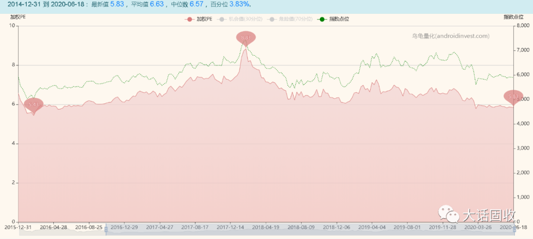 可是你看看全圖,多少年了,PE一直在6~8之間徘徊。特別是18年初沖高之后,后面幾乎沒(méi)怎么漲……看看對(duì)應(yīng)的股價(jià)就明白了(上圖虛線)。
