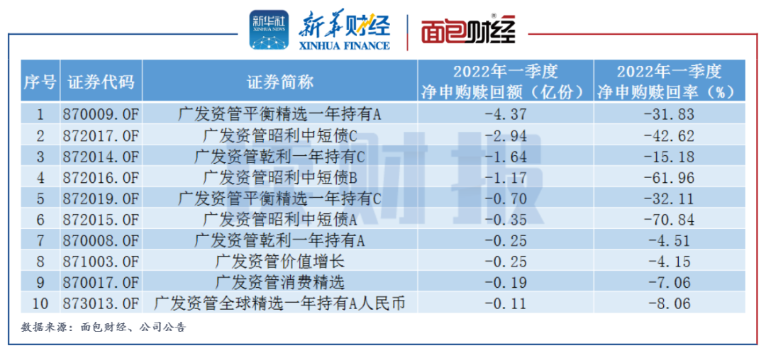 圖4:2022年一季度廣發證券資管在管基金凈贖回前10只