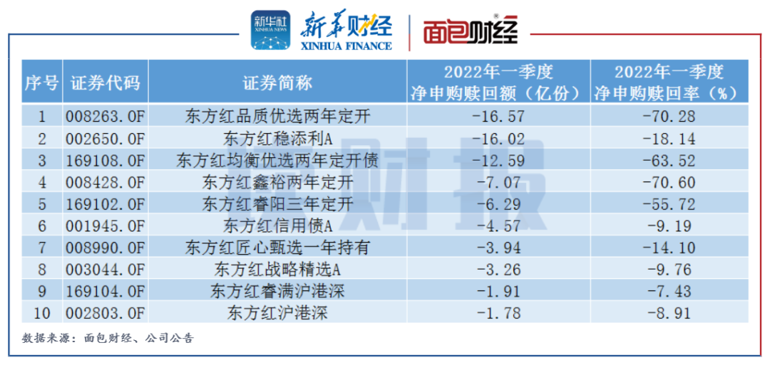 圖3:2022年一季度東方證券資管在管基金凈贖回前10只