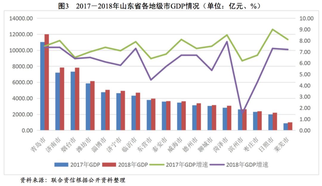 山東省經濟規模處于全國上游水平,2018年GDP排名全國第三,一般公共預算收入排名全國前列,政府債務率處于全國偏低水平,整體債務負擔輕。