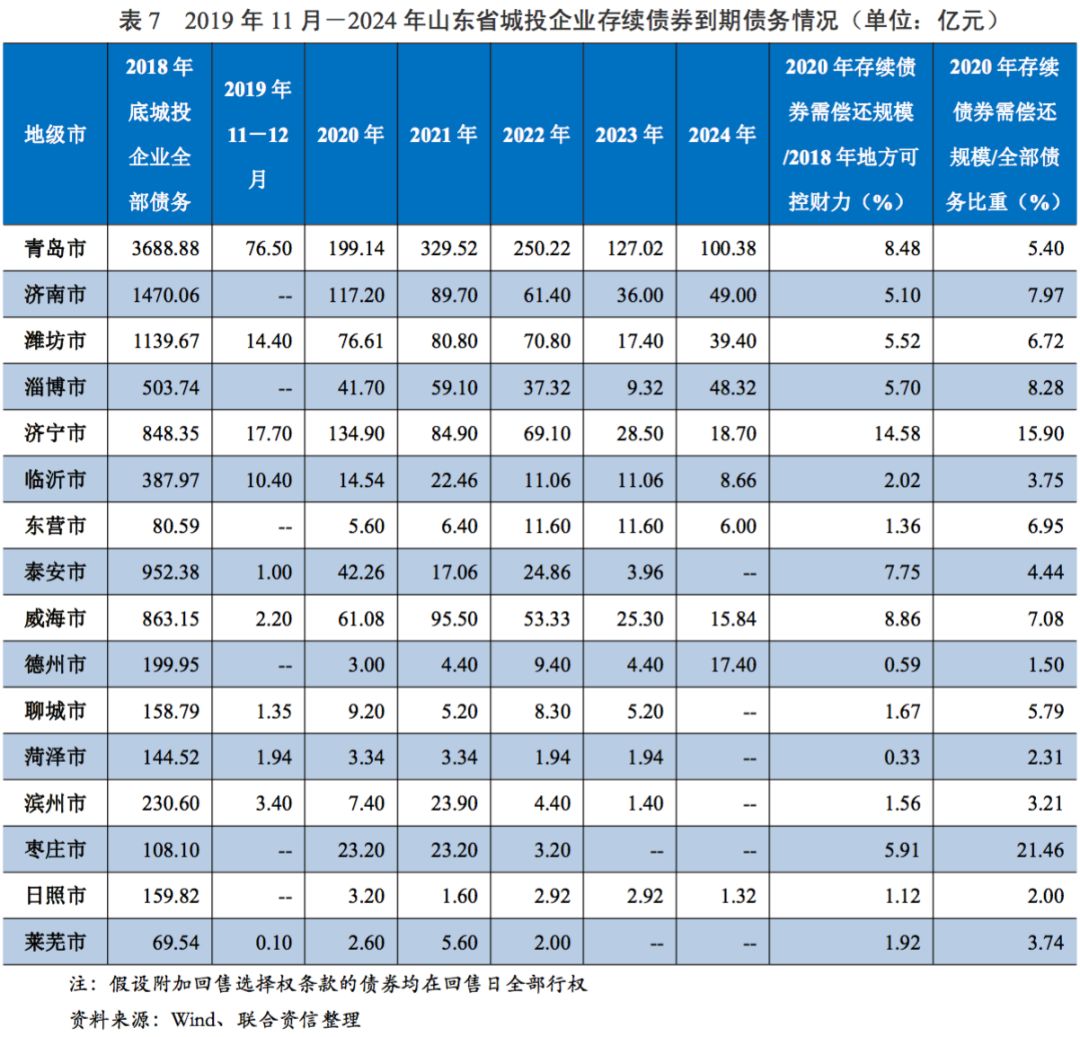 綜合看,未來山東省出現大規模城投企業違約或行政級別較高的城投企業違約的可能性較低,整體償債風險相對可控??紤]到未來山東省存續城投債到期量依然很高,部分地級市再融資壓力依然較大,需持續關注面臨集中償付壓力和地區債務負擔重的地級市城投企業再融資情況和融資成本變化情況、償債規模變化帶來的階段性信用風險以及城投企業向產業轉型過程中可能存在轉型失敗而導致外部支持減弱的風險。