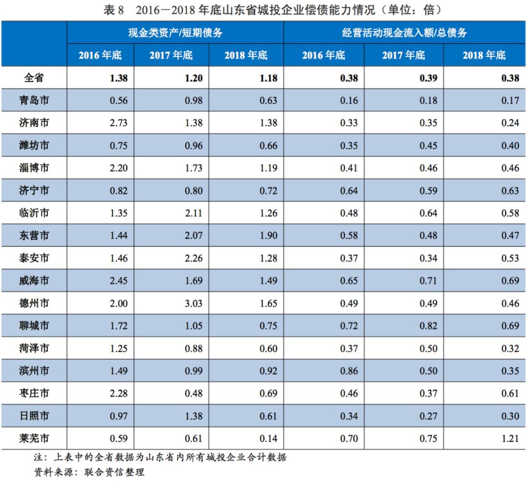 三、山東省地級市城投企業[5]償債能力