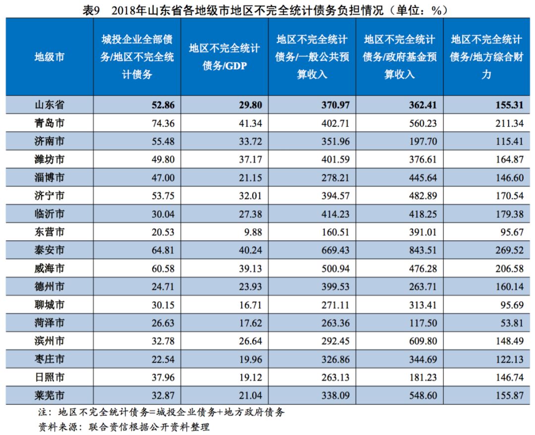 2. 山東省各地級市財政收入及政府債務情況