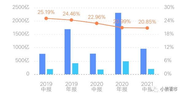 2021年上半年,融創(chuàng)中國(guó)的銷售毛利率為20.85%,自2019年以來該指標(biāo)就持續(xù)下滑,主要與其2017年土地溢價(jià)有關(guān)。