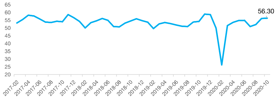 兩只持有中國物流資產的REITs表現更為優越,不但一舉收復失地更較年初實現7%漲幅。根據中國物流與采購聯合會數據顯示,10月份中國物流業景氣指數為56.3%,較上月回升0.2個百分點,為今年以來最高。