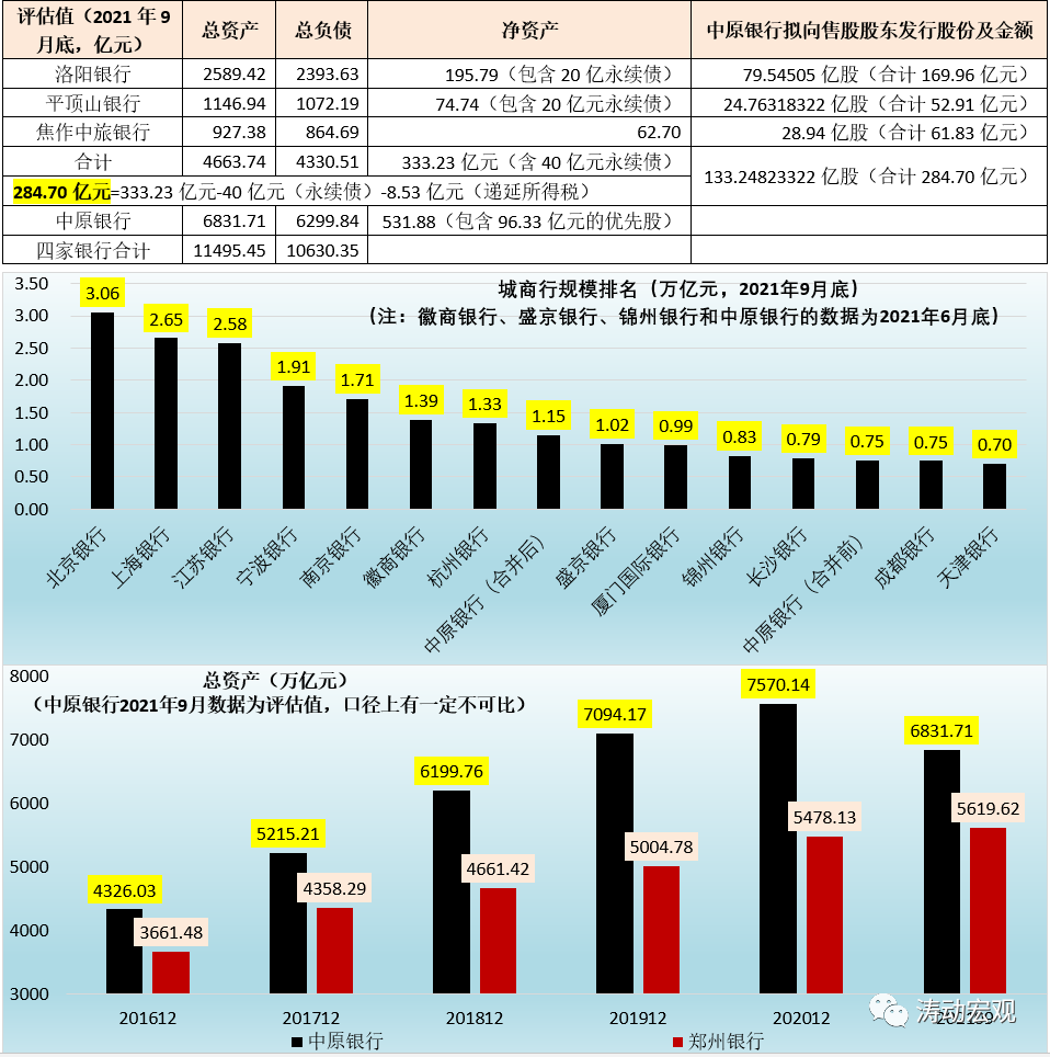 根據中原銀行發布的公告,本次吸收合并完成后,其總資產規模將突破1萬億元(2021年底的總資產預計將達到1.20萬億左右),歸母凈資產超過700億元、在城商行中的總資產排名將由之前的第12位提升至8位。