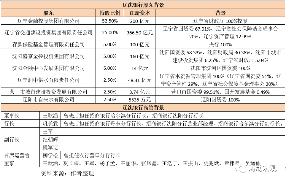 5、遼沈銀行的董事長和行長均出自招行系統,如其董事長王默涵曾擔任招行哈爾濱分行行長、沈陽分行行長,鞏長霖曾擔任招行哈爾濱分行副行長。其它高管大多來自遼寧省行政系統或金融系統。
