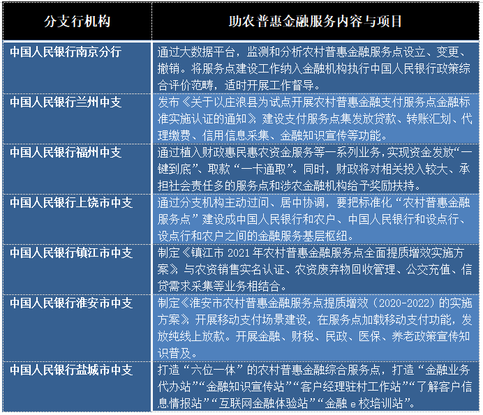 部分中國人民銀行分支機構助農普惠金融服務點