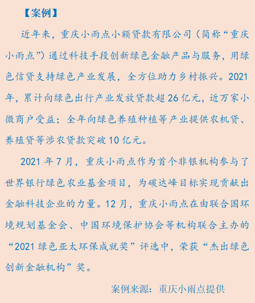 2021年,綠色金融與普惠金融在政策體系、市場機制、技術創(chuàng)新及金融機構內部管理更趨融合,協同推進綠色環(huán)保、包容性增長目標的實現,降低了全社會交易成本,防止普惠金融“普而不綠”現象,對我國實現綠色發(fā)展和包容性增長具有重要意義。