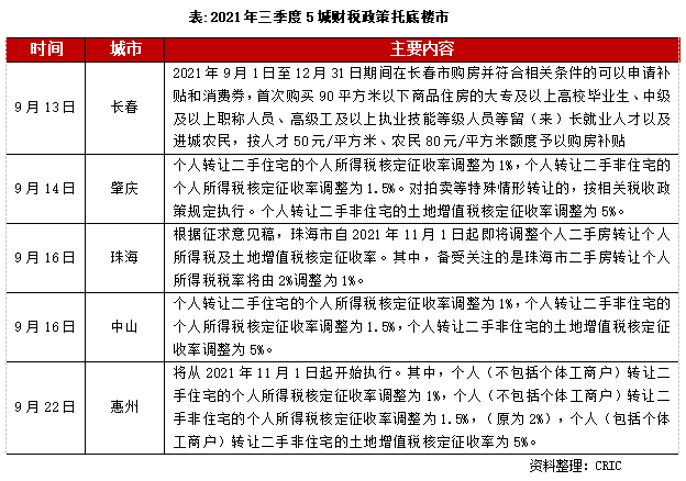 肇慶、珠海、中山、惠州相繼下調二手住宅轉讓個稅核定征收率,降低二手房交易成本。具體而言,個人轉讓二手住宅的個人所得稅率由2%調整為1%,二手非住宅個人所得稅率、土地增值稅率分別調整為1.5%和5%。