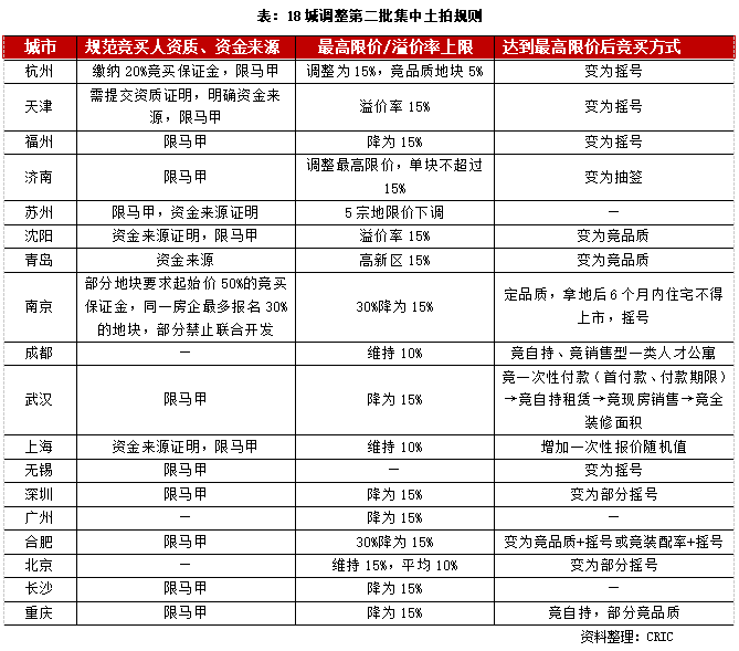 房企拿地方面,隨著土地市場供給側調控進一步深入,多個重點城市調整并升級了二輪集中土拍規則,熱點三四線城市也紛紛跟進,加強對地價、溢價率的管控,整體拿地情緒將趨于理性冷靜。