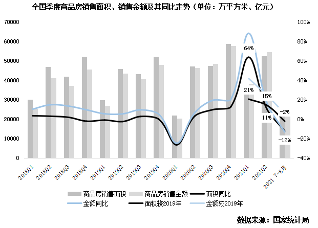 7-8月銷售規模較2020年、2019年同期跌12%、2%,東部地區增速回落13pct