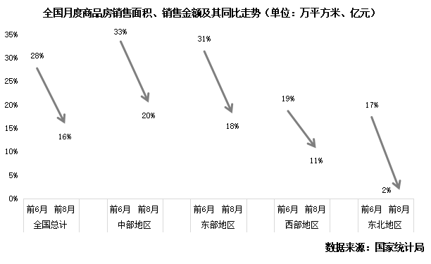 商品房銷售來看,隨著包括信貸、融資、土地等各方面調控預期不變,樓市下行壓力仍會加劇。