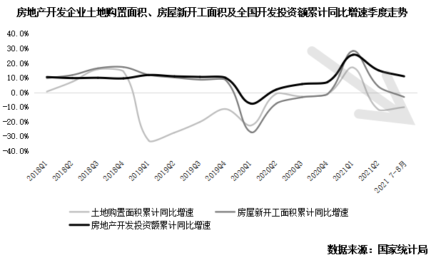 在房屋新開工與整體土地購置的乏力下,建安投資與土拓投資雙雙回落不可避免地將繼續減低整體開發投資額增速。預計四季度開發投資增速將降至10%以內并進一步回落。