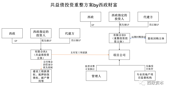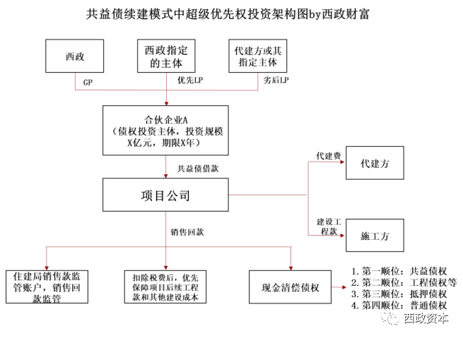 1. 投資架構:西政(GP)與其指定的主體(優先級LP)及代建方或其指定的主體(劣后級LP)共同成立合伙企業A作為超級優先權投資主體,優先級LP和劣后級LP按7:3的比例出資,總出資額度不超過約定金額。