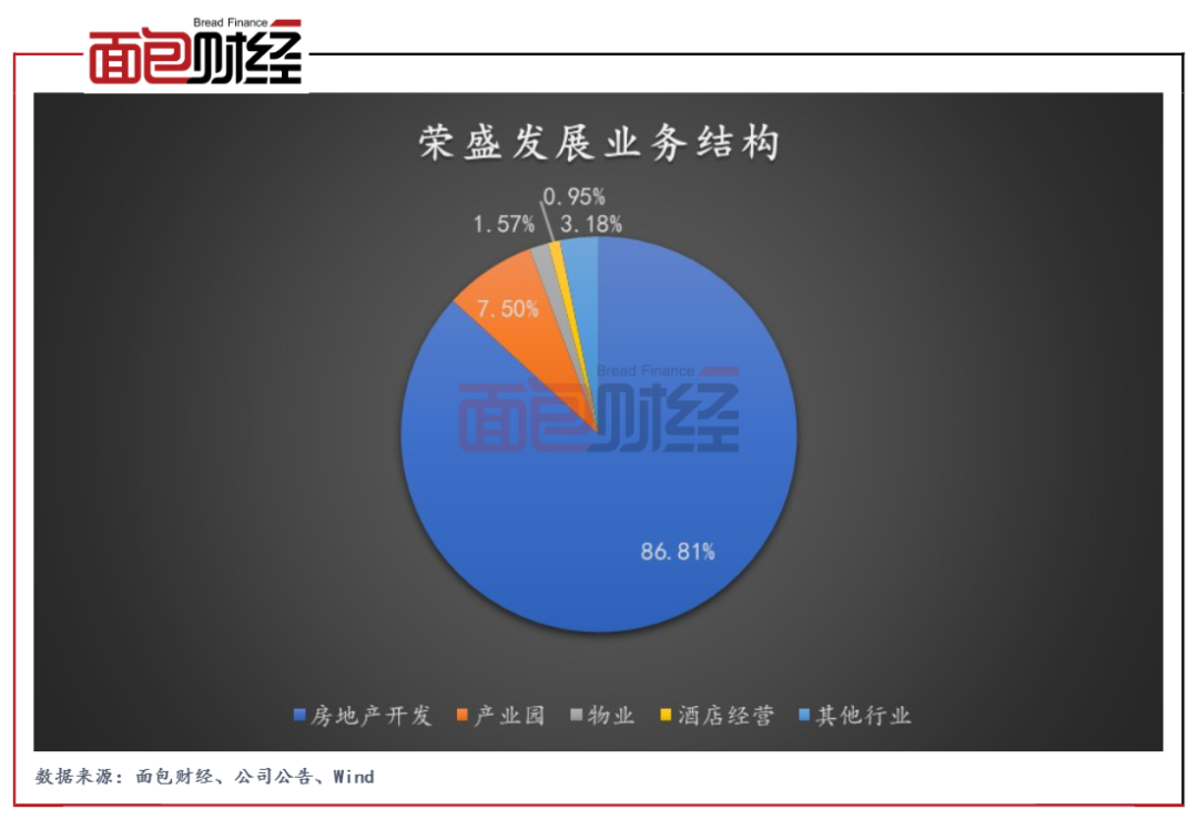 榮盛發(fā)展成立于1996年12月,總部位于河北,于2007年在深交所上市。目前公司已初步形成了以房地產(chǎn)開發(fā)為主業(yè),貫穿康旅、產(chǎn)業(yè)園、酒店、物業(yè)、金融等為一體的綜合性全產(chǎn)業(yè)鏈業(yè)務(wù)。2020年,公司房地產(chǎn)開發(fā)、產(chǎn)業(yè)園、物業(yè)、酒店經(jīng)營、其他行業(yè)營收占比分別為86.81%、7.5%、1.57%、0.95%、3.18%。