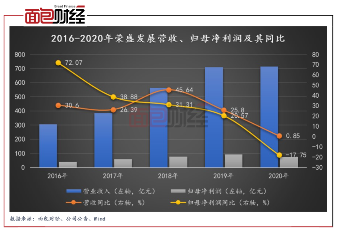 榮盛發(fā)展于近日發(fā)布2020年年報(bào)及2021年一季報(bào)。財(cái)報(bào)顯示,公司2020年實(shí)現(xiàn)營收715.11億元,同比僅增長(zhǎng)0.85%,營收增速自2018年以來持續(xù)放緩;實(shí)現(xiàn)歸母凈利潤(rùn)75.01億元,同比下降17.75%,近五年來首次轉(zhuǎn)負(fù)。