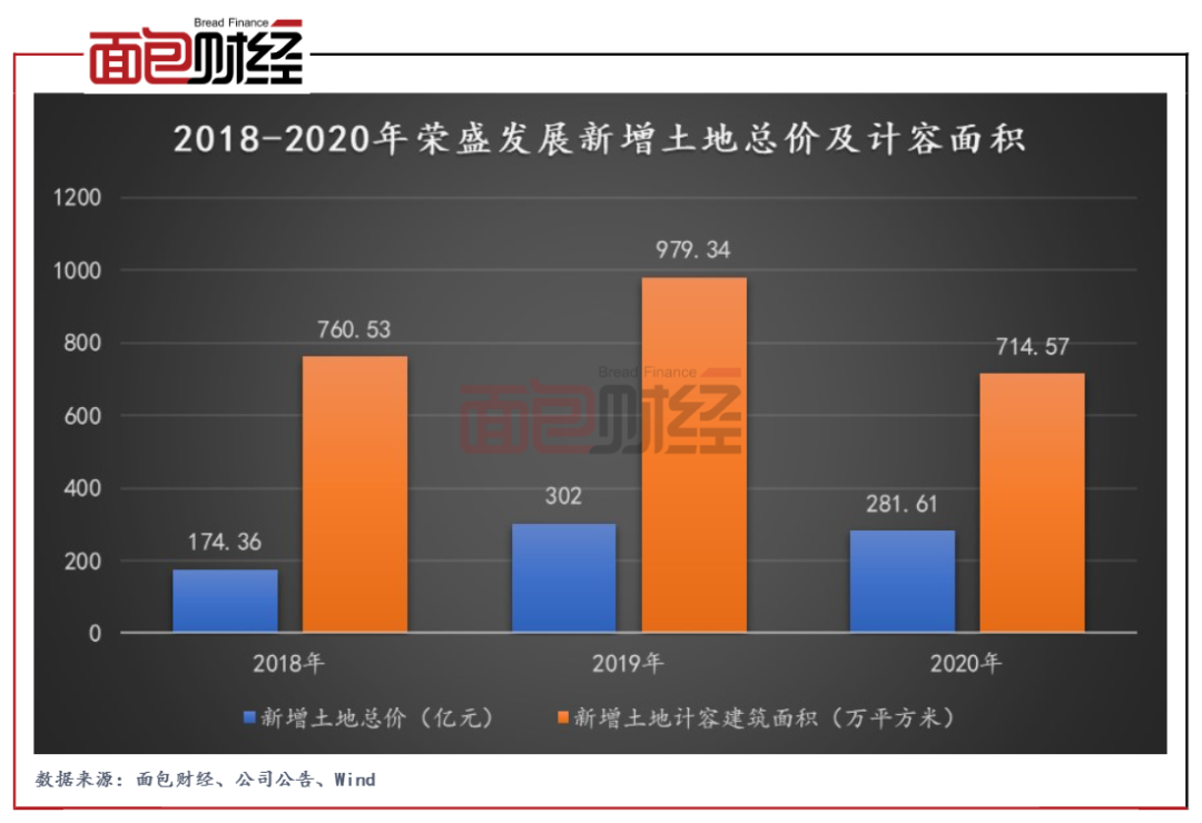 圖4:2018-2020年榮盛發(fā)展新增土地總價(jià)及計(jì)容面積