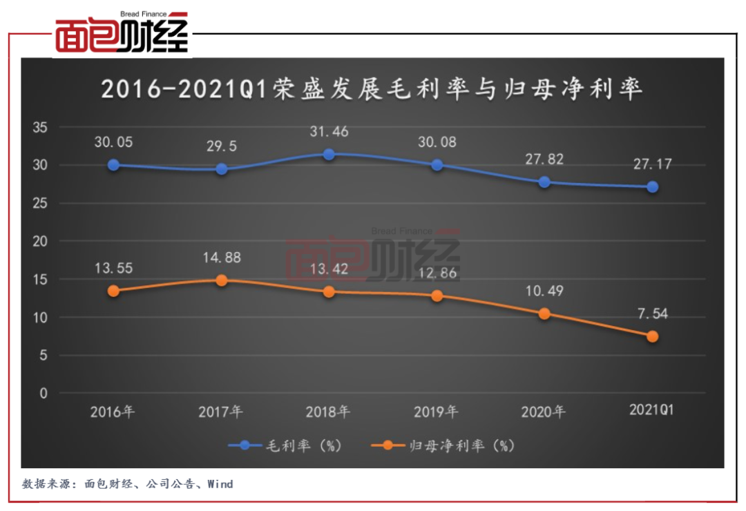 圖3:2016-2021Q1榮盛發(fā)展毛利率與歸母凈利率
