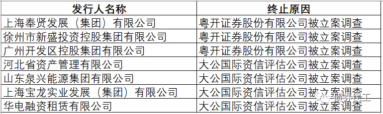 此前的2021年9月30日,中國證監(jiān)會在官網(wǎng)上披露7只小公募公司債券中止。從中止原因來看,其中4家發(fā)行人是因為大公國際資信評估公司被立案調(diào)查。目前證監(jiān)會尚未披露最終的調(diào)查結(jié)果。