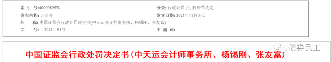 3、根據(jù)證監(jiān)會2021年11月4日公布的行政處罰決定書,中天運會計師事務(wù)所因為在山東勝通集團的審計過程中,“出具的勝通集團2013年至2017年年度審計報告存在虛假記載”和“對勝通集團2013年至2017年年度財務(wù)報表審計時未勤勉盡責(zé)”,被責(zé)令改正,沒收業(yè)務(wù)收入并罰款。