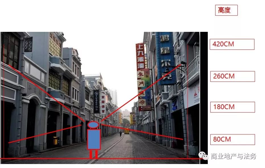 人在商業街內的活動和感知空間是三維的。所以設計師對街道的長度方向、寬度方向和高度方向都應有針對性地設計。