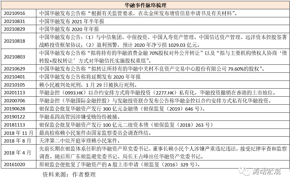 2、2021年9月16日,中國華融發(fā)布公告稱其已于北金所發(fā)布增資信息申請書及有關(guān)材料,意味著中國華融引進(jìn)戰(zhàn)略投資者將進(jìn)入實質(zhì)階段。