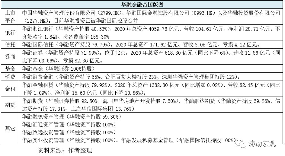 (3)2021年6月,國新控股有限責(zé)任公司(國資委100%持股)與中國華融就收購其旗下華融證券(華融證券旗下還擁有華融基金與華融期貨)進(jìn)行洽談,