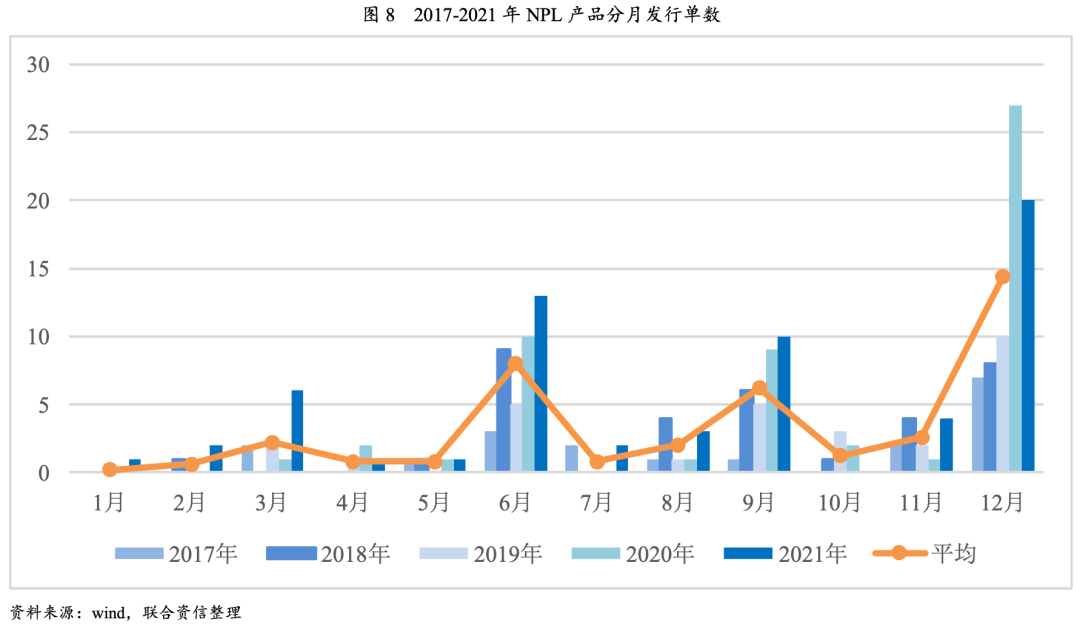 7.NPL產(chǎn)品集中在季末和年末發(fā)行,發(fā)起機(jī)構(gòu)出表需求較強(qiáng)