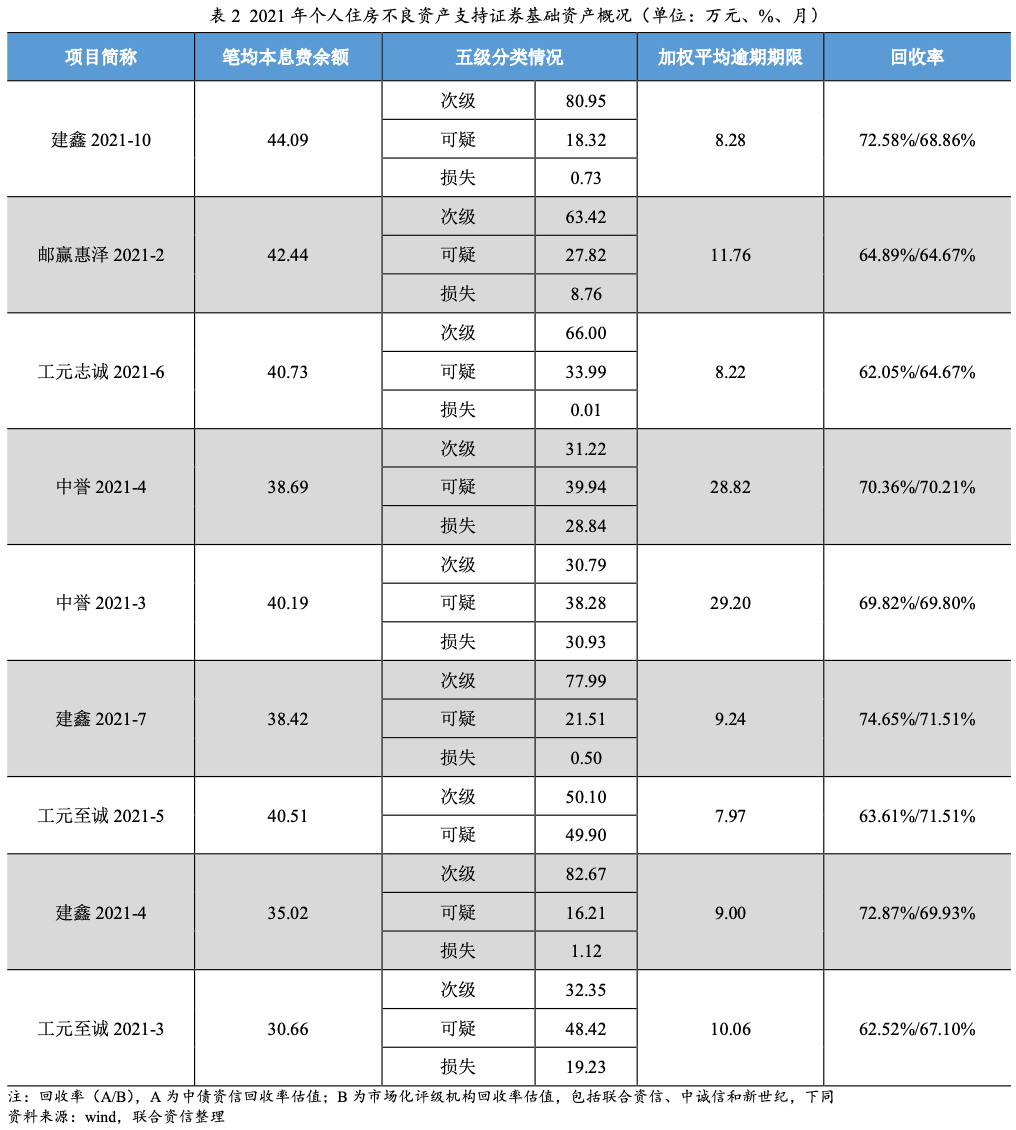2.個(gè)人信用類不良貸款A(yù)BS的兌付速度快于含押品類不良貸款A(yù)BS
