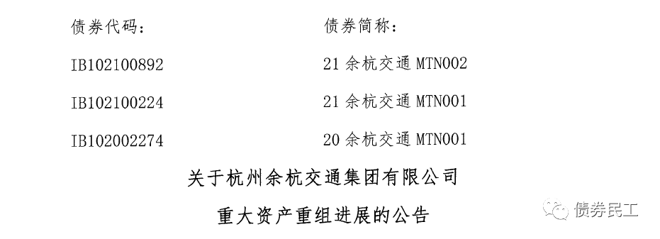 (2)2021年11月4日,杭州余杭交通集團有限公司公告公司進行重大資產重組的進展,將部分資產劃出公司,部分資產劃入公司,實現了重大資產重組。根據余杭交通的公告信息,劃出資產部分的總規模為279.20億元,劃入資產的總規模為281.56億元。如果單純從財務數據來看,此次資產重組之后,余杭交通的資產規模和凈資產規模均有一定的增加。