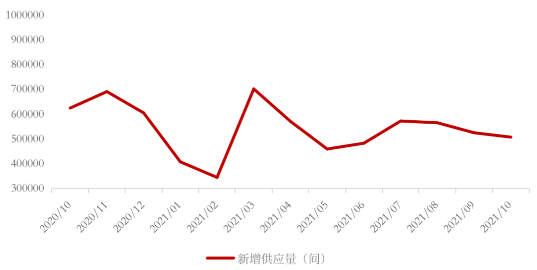圖:2020年10月-2021年10月全國(guó)55城個(gè)人房源新增供應(yīng)