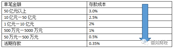 這也解釋了兩件事情:1,以零售見長的銀行,負債成本總是很有優勢,原因就在此;2,大行人家跟大金主“門當戶對”,所以議價能力也強一些。