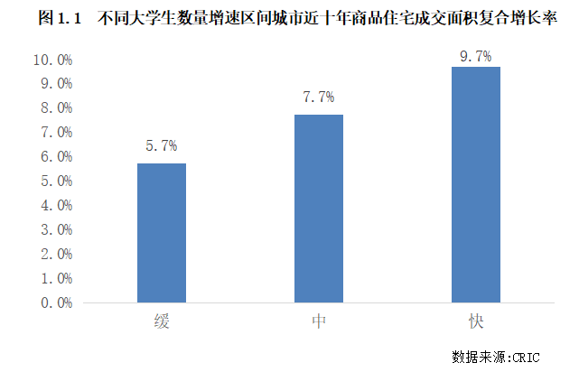 在樣本城市的選擇方面,我們選取了常住人口規模相對較高的城市,包括所有的一二線城市及常住人口規模高于500萬的三四線城市,共計100個城市。這些城市的大學生數量占比在4%~42%之間不等,能充分體現在不同占比下,城市的大學生人口規模增長差異對住宅市場產生的影響。