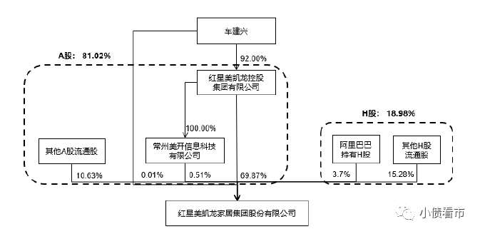 從股權結構上來看,紅星美凱龍的控股股東為紅星控股,持股比例為69.87%,穿透后公司實控人為自然人車建興。