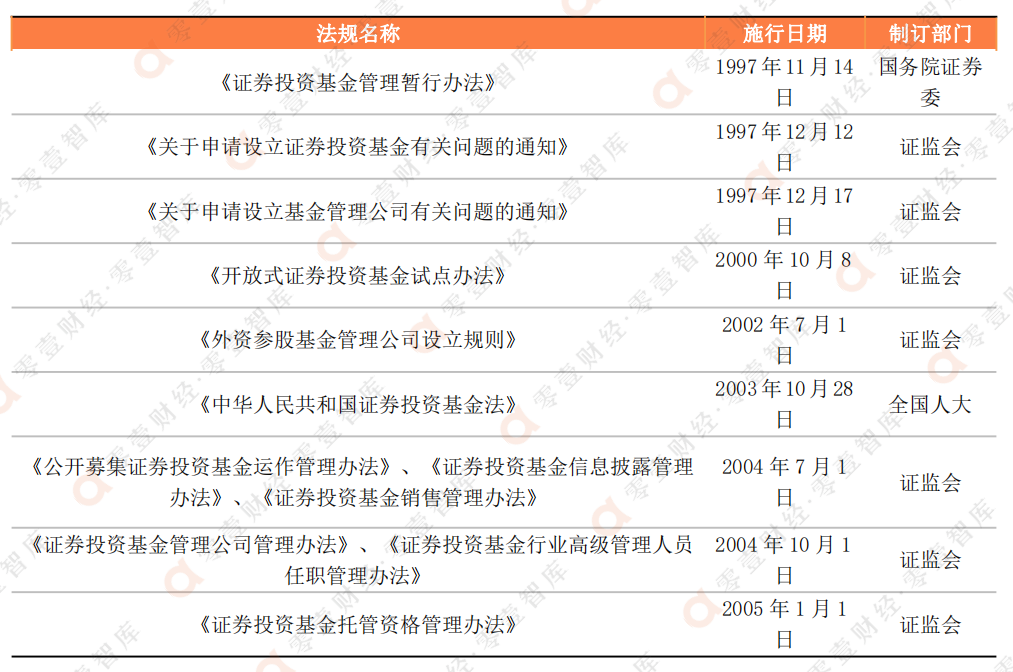 1997年11月14日,國務院證券委員會頒布了《證券投資基金管理暫行辦法》,對基金的設立、募集、交易、基金托管人和基金管理人的職責等作了詳細規定。同年12月12日,中國證監會發布《關于申請設立基金管理公司有關問題的通知》、《關于申請設立證券投資基金有關問題的通知》,就基金契約、托管協議、招募說明書、管理公司章程和信息披露、從業人員資格管理等制定了嚴格的規范。而在3年后的2000年,中國證監會發布了《開放式證券投資基金試點辦法》,自此開放式基金的運行和監管同樣有法可依。此后,隨著相關法規的不斷修訂完善,我國基金業的監管框架也日趨成熟。