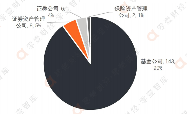 根據Wind數據,目前全市場公募基金管理人共159家,可以分為基金公司、證券資產管理公司、保險資產管理公司、證券公司四大類型,其中超過90%是基金公司。