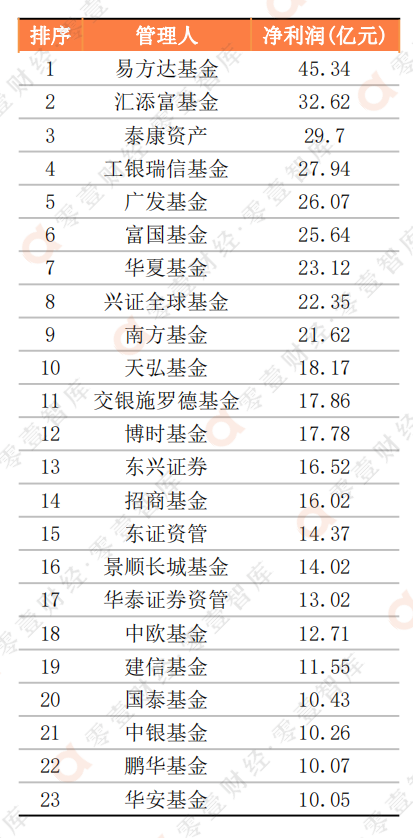 四、公募管理人2021凈利潤前三:易方達、匯添富、泰康資產
