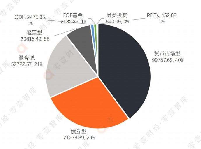 五、貨幣市場基金占四成,債券型基金近三成