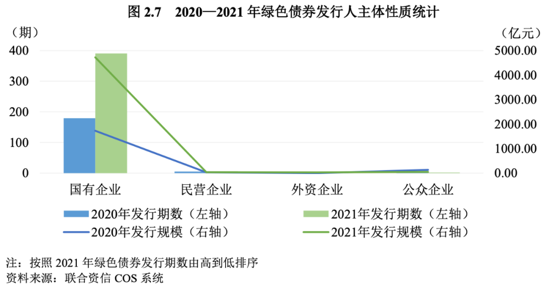 7.國有企業仍是綠色債券的主要發行人,發行量占比進一步提升