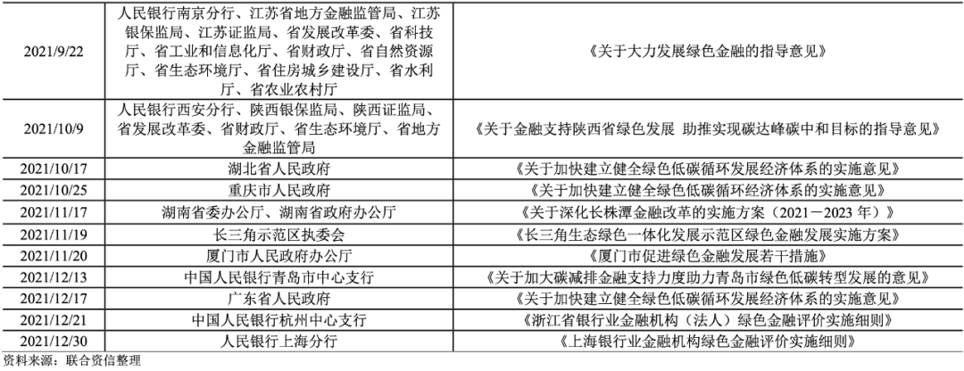 鼓勵地方綠色債券投資。2021年5月7日,福建銀保監局出臺《關于銀行業保險業推進綠色金融發展的指導意見》,指出支持各銀行業機構發行以綠色信貸資產為基礎資產的證券化產品,改善資產負債結構;支持保險機構通過股權、債權等方式,為重點綠色項目提供長期、穩定的資金支持;鼓勵有條件的機構發行綠色金融債券;支持信托公司多元化拓展綠色信托業務,積極受托發行綠色信貸資產證券化、綠色企業資產支持票據,承銷、投資綠色債券。2021年5月10日,廣東省政府印發《廣東省促進建筑業高質量發展若干措施的通知》,指出大力發展綠色金融,向節能建筑、綠色建筑以及以智能建造和新型建筑工業化方式建設項目提供綠色信貸、綠色債券等融資對接服務,鼓勵保險資金支持相關項目建設或者提供增信措施。2021年5月14日,上海市政府發布《關于加快推進上海全球資產管理中心建設的若干意見》,指出擴大綠色債券發行規模,推動綠色信貸資產、節能減排項目應收賬款等證券化,引導資產管理機構配置綠色資產;發展綠色債券指數以及相關投資產品。2021年7月28日,寧夏金融監管局等多部門聯合印發《關于綠色金融支持清潔能源產業高質量發展的工作實施意見》,指出圍繞全產業鏈發展綠色金融,鼓勵各類金融機構通過綠色債券等多種金融工具拓寬企業融資渠道;積極引導險資直投,發揮綜合金融服務集團和保險資金長期配置優勢,通過債券等形式參與綠色項目投資建設。2021年9月1日,海南省政府發布《關于貫徹落實金融支持海南全面深化改革開放意見的實施方案》,指出支持銀行業金融機構發行綠色金融債券,支持符合條件的綠色企業上市融資、再融資、發行綠色債券等;建立金融機構投資綠色債券、綠色產業的激勵機制,提高金融機構參與海南綠色投融資項目的積極性。此外,為落實《銀行業金融機構綠色金融評價方案》,2021年12月,央行杭州中心支行和上海分行相繼印發實施細則,明確將綠色債券納入綠色金融評價范圍,評價工作每季度開展一次,評價結果納入央行金融機構評級。上述政策將增加地方金融機構對綠色債券的投資需求,從需求端推動綠債市場擴容。