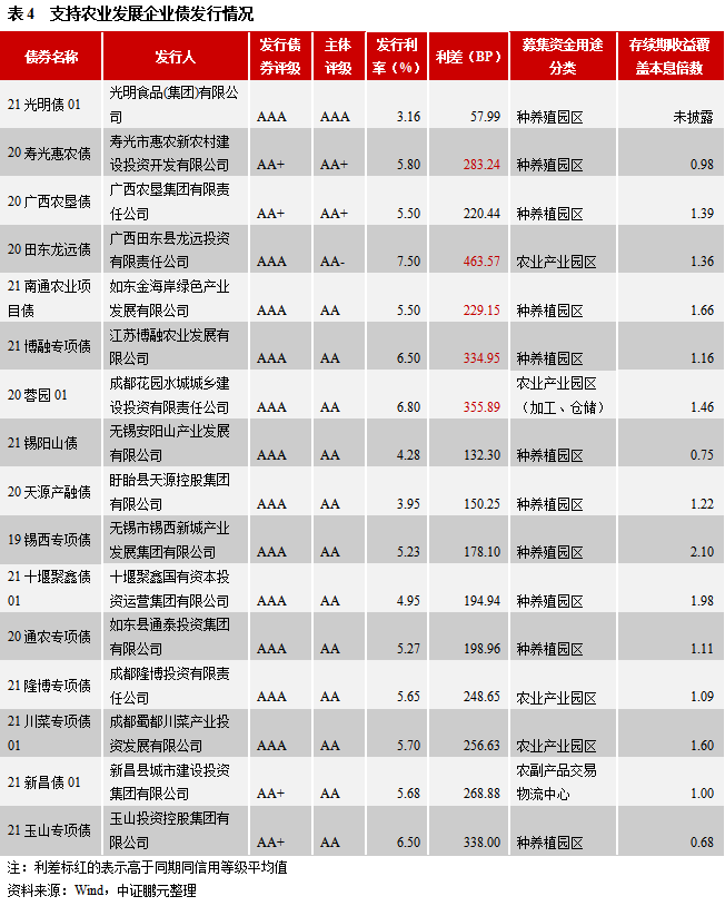隨著鄉村振興政策的推動,為構建現代鄉村產業體系、增加對農業農村綠色發展的資金投入奠定了制度基礎,支農企業債的發行存在一定空間。