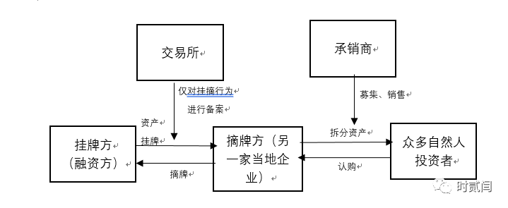即明面上是掛牌方與摘牌方B2B結構,但事實上摘牌方下面包裹著N個自然人投資者。由于這一操作方式,在表面上符合各地金融辦等監管機構的要求,因此交易所對管理人或承銷機構資金拆分、大標拆小標等行為睜一只閉一只眼。